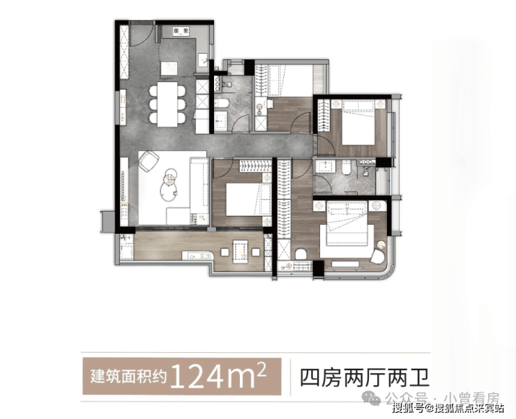 270°环幕视野,四开间南向望江,畅享约12m拥江景观线;LDK客餐厨一体化设计,无分界通透聚厅;L形江景阳台,约6.9m面宽,最大进深约2m;行政套房式主卧搭配独立衣帽间,收藏江景生活的多重想象。