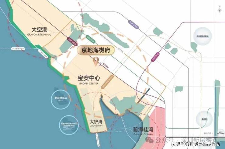 京地 海樾府项目位于深圳前海宝安中心区碧海区域,宝源路与金海路交汇处,总占地面积1.79万㎡,地上总建面约11万㎡,地下总建筑面约6万㎡,定位为高端城市综合体,其业态包含建面约55-105㎡2~4房高端住宅、星级酒店、精品公寓及办公。项目与地铁11号线碧海湾站无缝衔接,距离地铁1号线西乡站约700米,交通便利,是占据前海核心位置双地铁的优势资源。