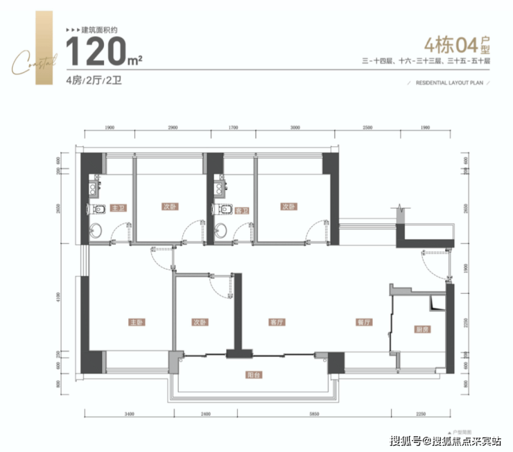 3栋:4梯6户,层高3.1米,01-04户型100平3房2卫,05-06户型120平4房2卫