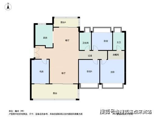 121㎡ 四房两厅两卫:四开间朝南、6.4 米大阳台,南北对流,空间阔绰。