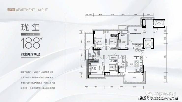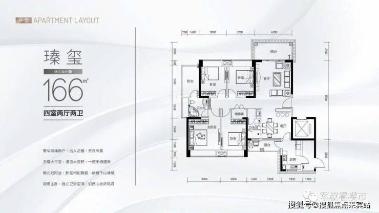 项目依傍梧桐半山,约166-188㎡四房大宅,三梯两户。纯板式结构,南北通透接纳更多梧桐绿意。