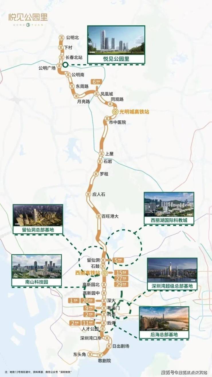 地铁13号线是光明首次、快速、直达南山最核心区的轨道。去留仙洞总部基地、科技园、后悔总部基地等都非常方便。