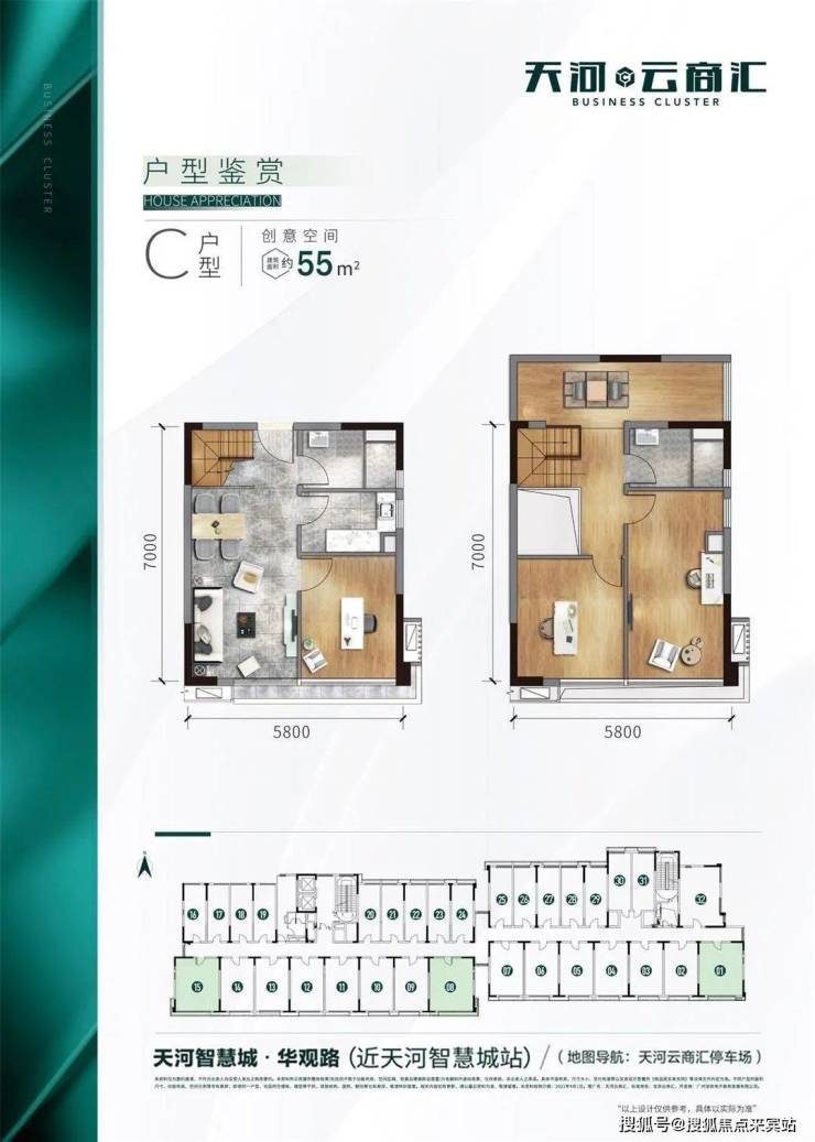 其中,创意LOFT建筑面积约30-55㎡,企业总部建筑面积约155-900㎡,总套数约1700套。