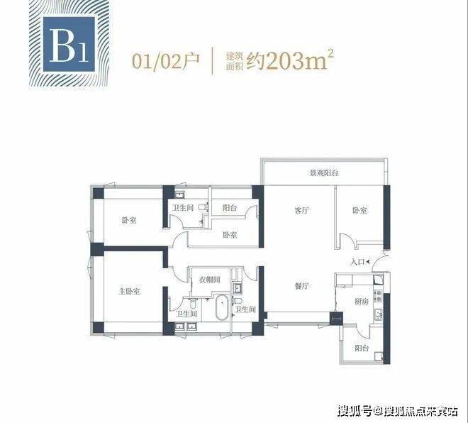 双主卧套房设置且270度景观面,同时主卧带独立衣帽间,竖厅南北通透带7.4米大阳台。