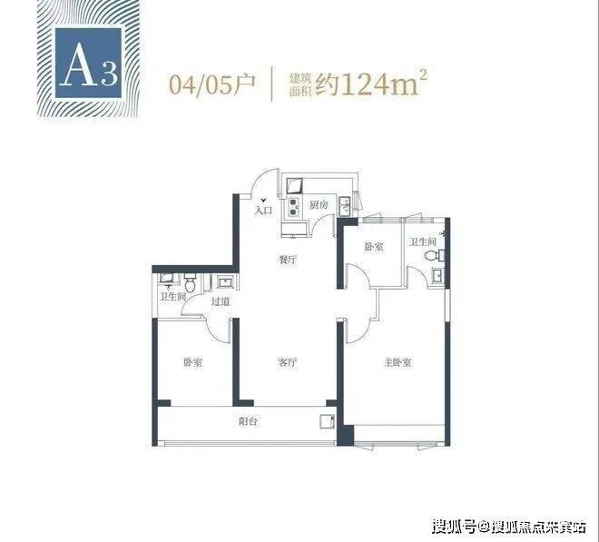 124㎡的3房2厅2卫:设计的是双龙抱珠格局,客厅超大观景阳台,东南朝向,缺点有黑卫,小卧室对天井外走廊采光。