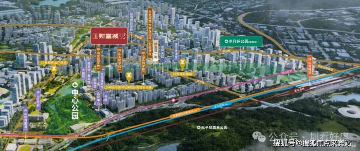 半月环公园(规划中):约48万㎡活力绿洲,链接城市繁华与自然纽带,财富城二期矗立半月环公园头排,将公园美景纳入塔尖居住视野,尽显“曼哈顿中央公园”式享受。