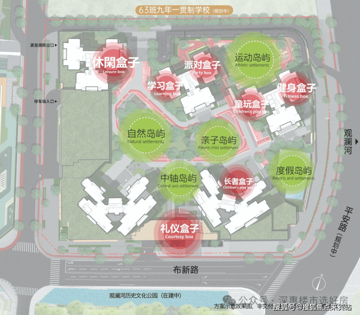项目配建两所幼儿园,附近规划有1所九年一贯制63班学校,根据2024年龙华区教育局最新的学区划分,小初学区都是划分在观澜中心学校,另外还有龙华高级中学教育集团观澜校区是面向全龙华招生的。另外还有观澜第二中学;观澜中心学校在2024年小一是录取到了第三类,初一录取积分是第六类81.8分。