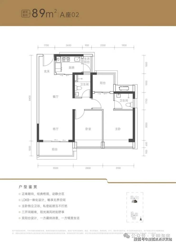 建面约89㎡正南3功能空间✨三开间正南朝向;动静分区