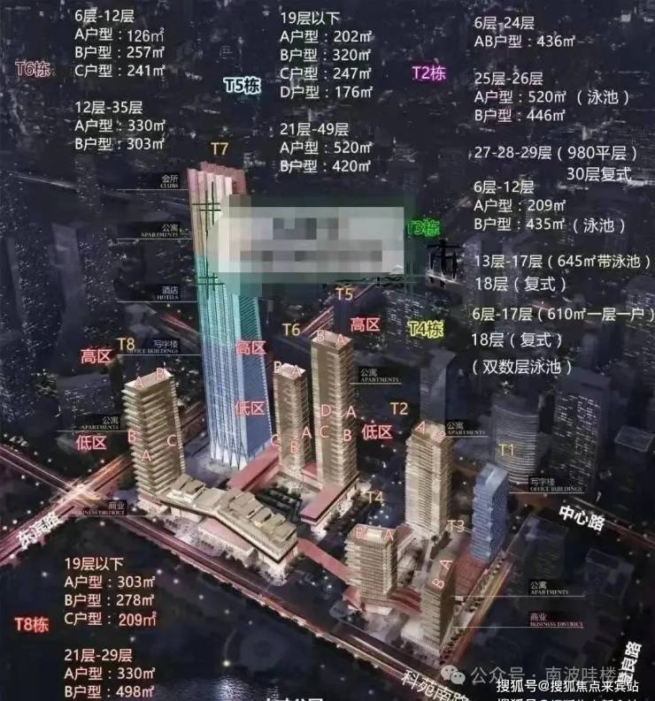 高区偶数层,A户型介绍及户型图(21-49层)约520平