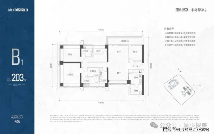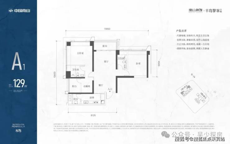 A1有两条腿,分别1-1栋01/02,主朝向是西北向,双龙抱珠格局。