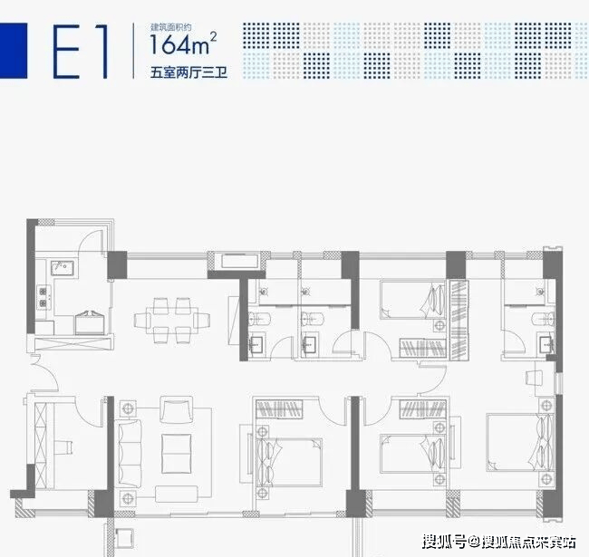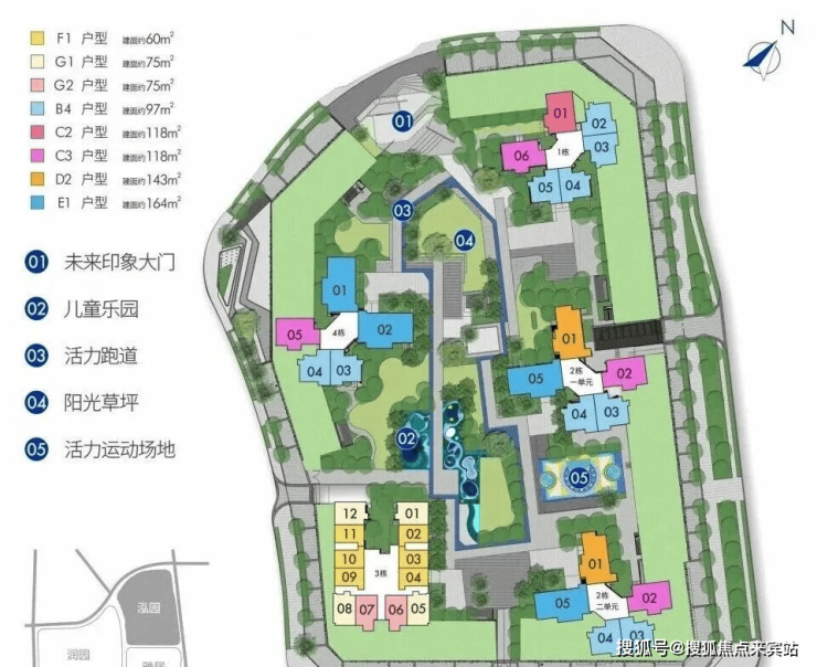 合正方洲瀚府共由6栋总高46-53层的住宅组成,其中1栋1单元/2栋1/2单元住宅47F,1栋2单元住宅46F,3栋1单元住宅53F,3栋2单元住宅52F,5栋是1所18班制幼儿园,园区内规划有多个儿童游戏场地,羽毛球场,足球场,总规划1508户,全部都是商品房,其中1栋2单元3梯5户,其它栋数都是3梯6户设计。