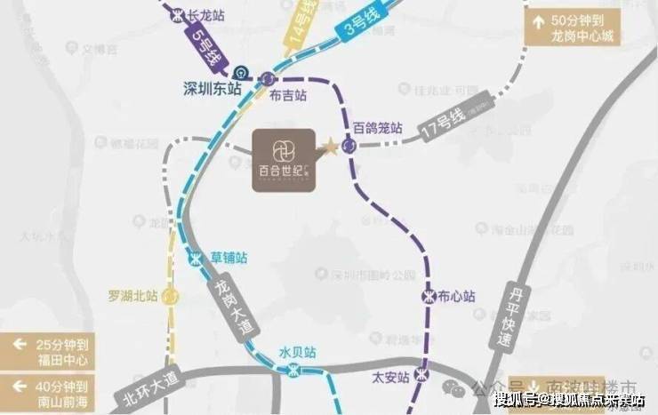 项目于5/17号线(建设中)百鸽笼站双地铁上盖,3/14号线环绕,1站瞬达罗湖,4站抵达福田芯