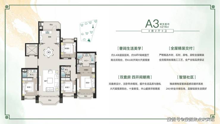 ① 是整个小区唯一一栋 216㎡户型,属于绝版设计,卖一套少一套,未来不会再推出同类型房源,兼具居住与收藏价值;
