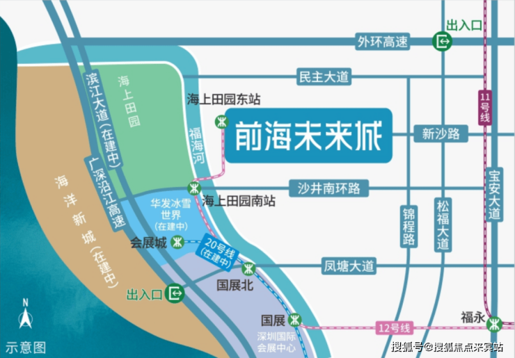 交通配套:卓越前海未来城,家门口就是12号地铁线“海上田园东站”,一期是最靠近地铁站的,2站到国展北站可以换乘20号线,6站到福永站还可以换乘11号线,快速通达宝中,南山区。