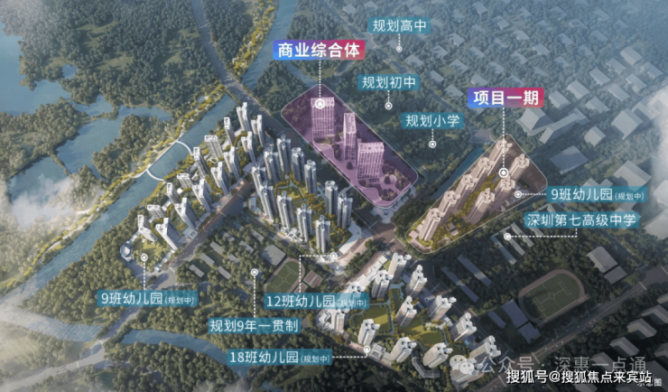 优质高中方面,项目距离深圳第七高级中学(省一级公办高中)仅约210米,步行可达,2025年中考录取分数线AC类走读为488分,D类为515分,教育资源优质。