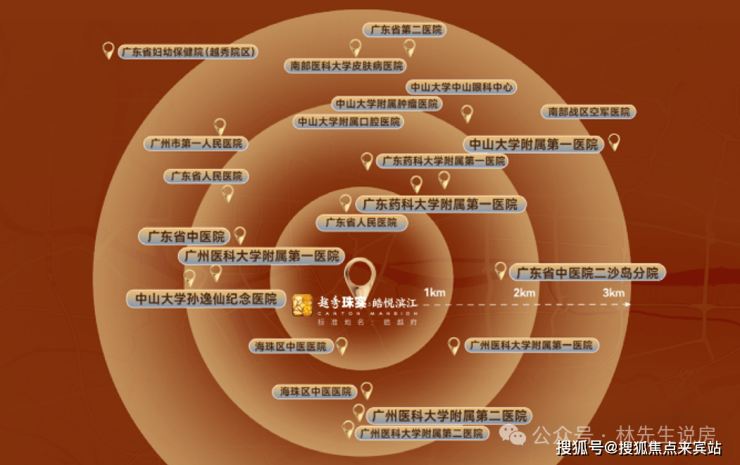 享受广医一院二院,孙逸仙纪念医院、广州市十字会医院等号称“五分钟生命线”的老城医疗保障。同时3km范围可速达海珠、越秀多个重点医疗配套。