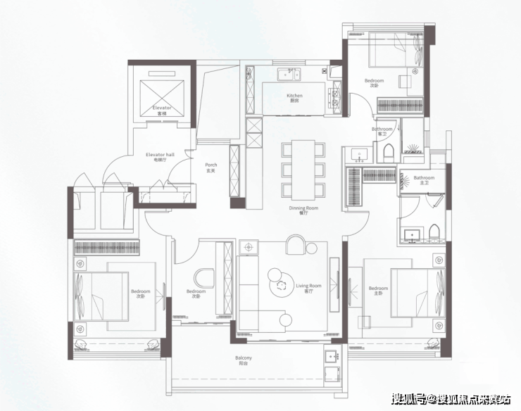 建面约160㎡四房两厅三卫,奢享全广扛鼎四房,奢享约10㎡专属电梯厅,玄关入户,保护私密性,从客厅贯穿次卧,约4米大开间,LDK餐厨一体化,南北双向阳台,约6.4米超宽阳台,南向卧室直通阳台,舒适采光豪华景观。