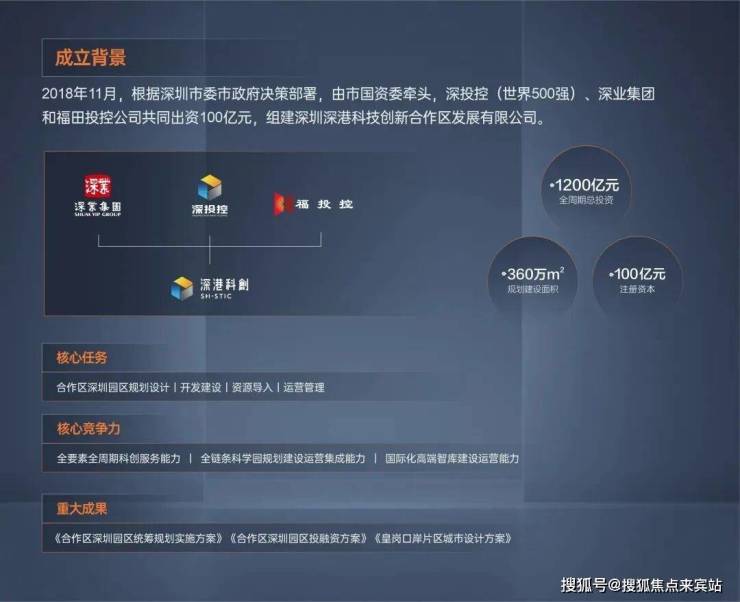 作为深圳园区首批重点建设项目,河套壹号是河套合作区的形象门户,也是深圳城市中轴线上面向香港的形象门户,兼具总部办公、科创投资、科技展示、产业配套等功能。