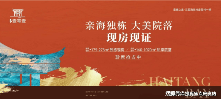 是泰康倾心打造的继泰康之家 CCRC 持续照护养老社区后的创新产品线,选址自然环境与未来发展俱佳的海棠湾一线,旨在满足全年龄段客户休闲度假、候鸟旅居、适老化等多元需求。分两期开:一期为专享产权区海棠壹零壹(101席中式独栋产品,建面约2万㎡,在售),二期为五星级标准康养度假村(建面约8万㎡,按五星级酒店标准投建)。