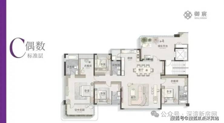御宸项目精心打造建面约119-179㎡的四代奢宅,其户型设计也是亮点满满。