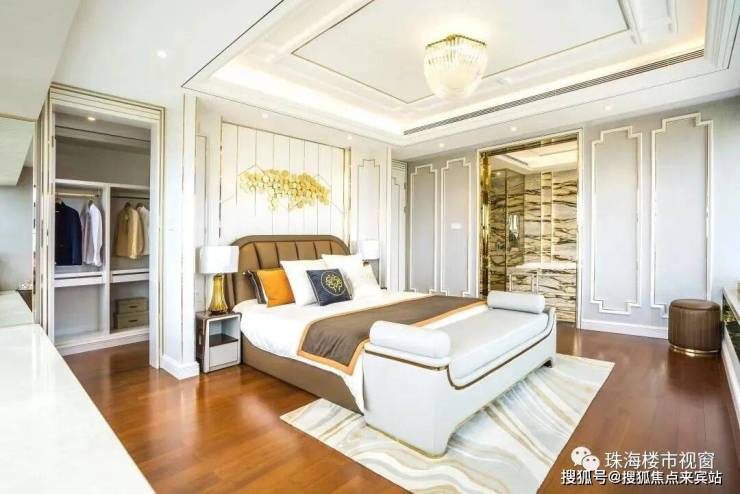 对标全球七星酒店的主卧美学空间,崇峰打造建面超大主卧套房,超大飘窗设计,拉伸观景视野,奢配南向独立卫浴间,尊崇阳光私密体验,尽可享受生活的悠然与非凡。