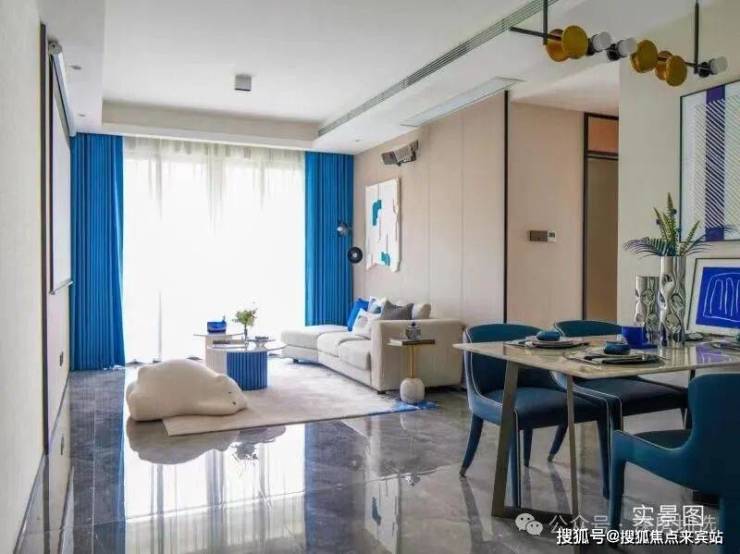 2、客厅、餐厅一体化设计,直通大景观阳台主卧明亮飘窗,窗外绿意尽落眼底。