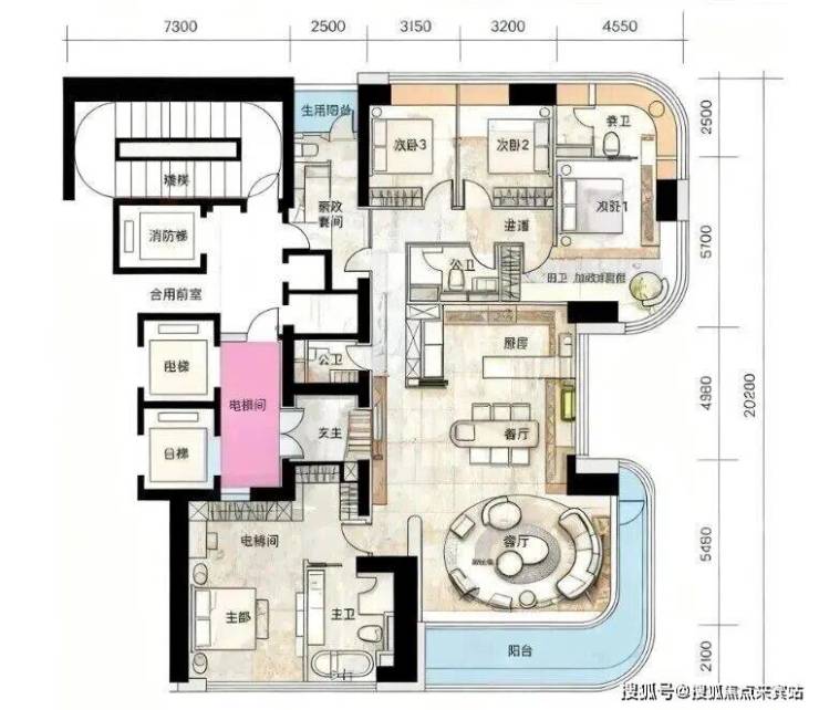 5梯2户:近乎私梯的配置(平均2.5梯服务1户),出行便捷无忧。适合追求极致空间体验与顶级服务的家族或精英领袖。