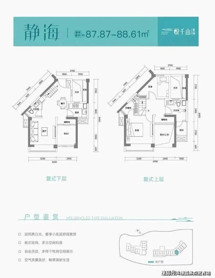 项目只有2栋住宅,1栋总层高25层,2栋总层高33层,共356户,层高为5.6米真复式,面积段为64㎡—98㎡的2-3房。