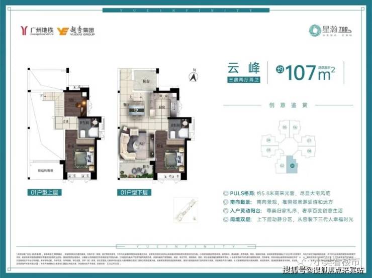 建面107平复式,上下动静分区,南向景观,这个户型比较少,在售北区。