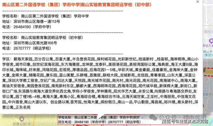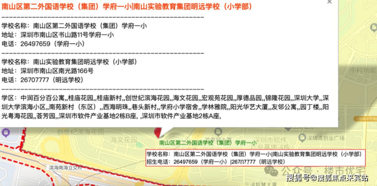 处南二外学府一小和南二外学府中学学区范围内,直线距离500米范围内有省一级学校深圳南山中加学校(学区范围如有变动,以南山区教育局最新颁布政策为准)