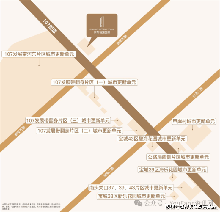 宝安十四五规划同步提出,将重点开展107发展主轴沿线城市更新,预计超19个城市更新和土地整备项目落地,未来将打造深圳发展战略性走廊和大道经济范例。