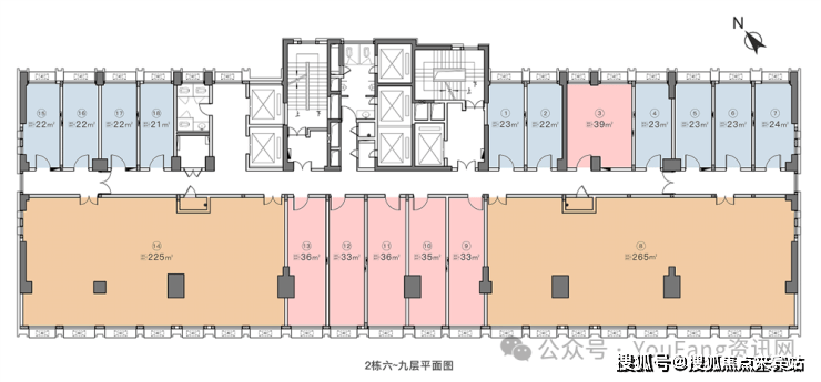 (3)商务办公:21-54㎡及215-265㎡,适合企业办公需求。