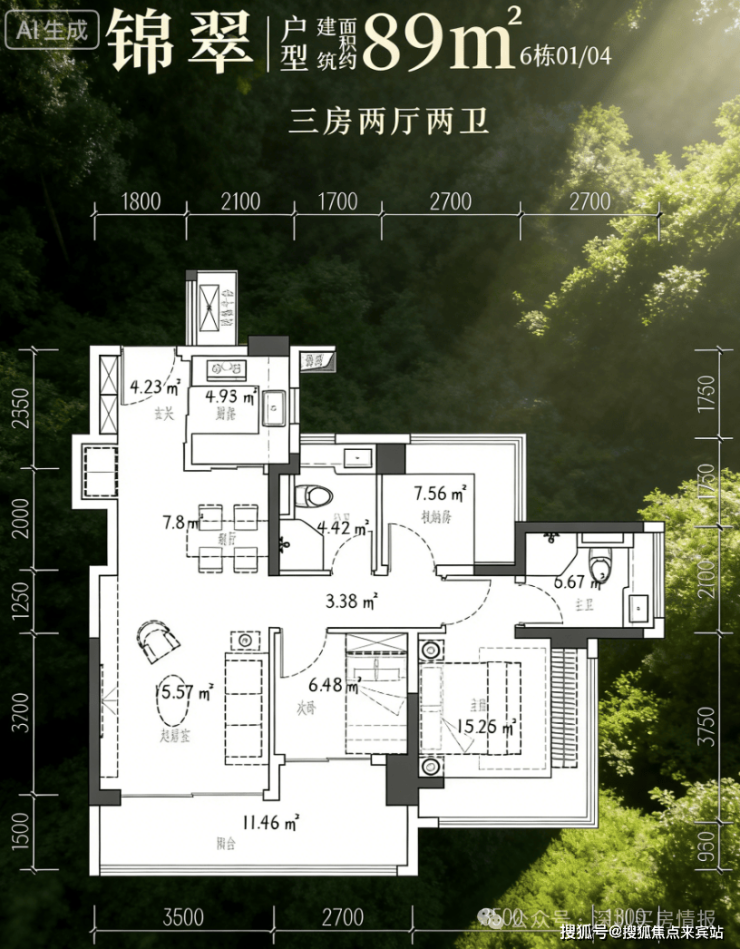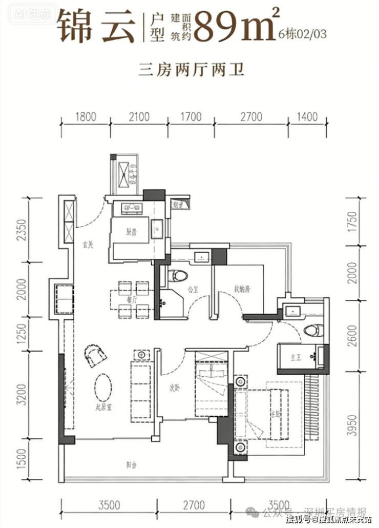 89㎡3 房 2 厅 2 卫