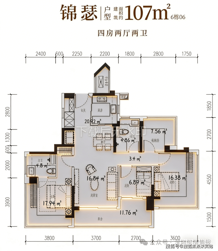 104-107㎡4 房 2 厅 2 卫