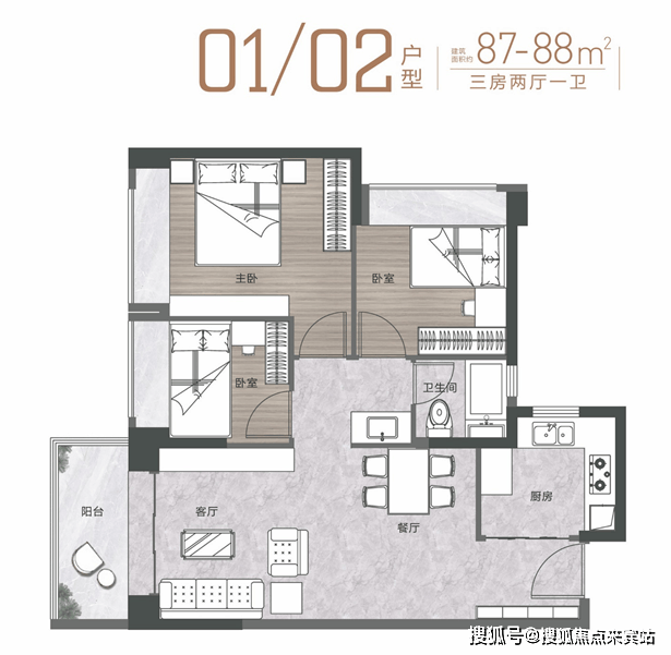 约88-99㎡精制3房,考究空间布局,户户方正实用;入户、起居、厨房、卫浴、收纳等五大精装系统,优选国内外知名品牌,大手笔配置,为城市精英营造极具品质感的美好生活方式