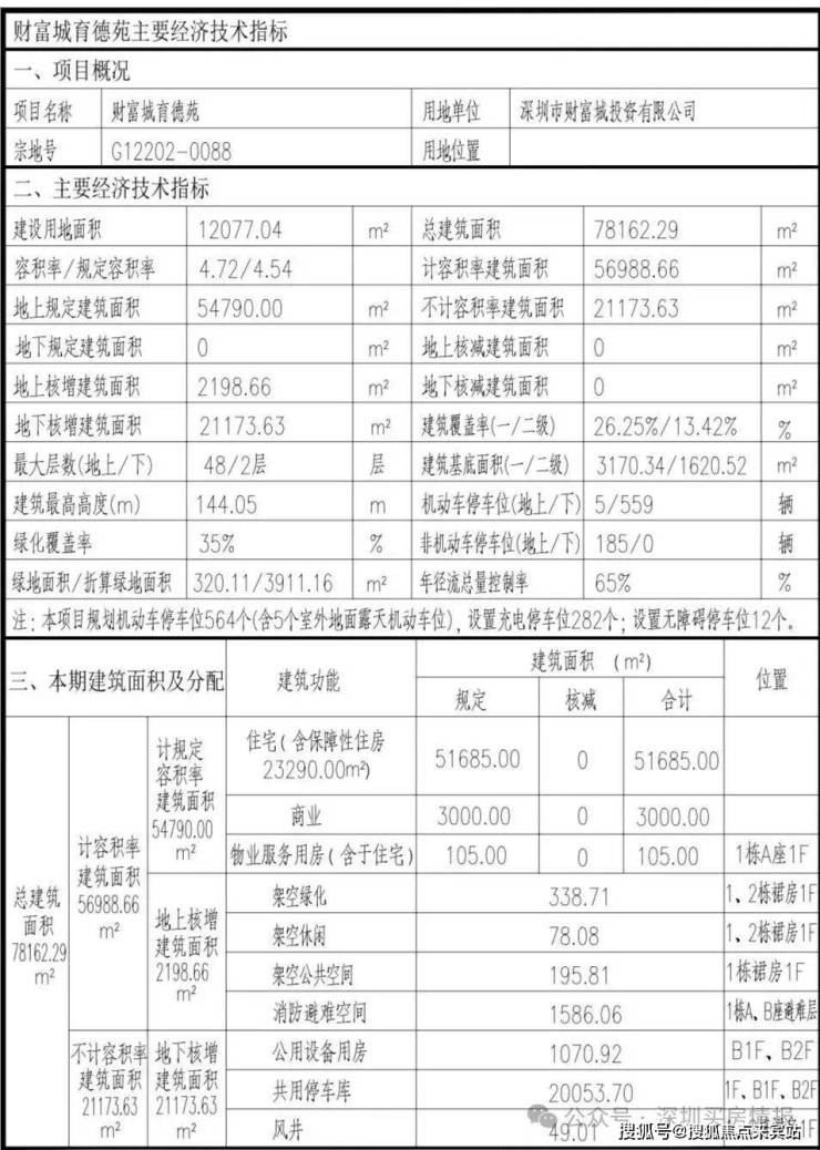 财富城育德苑:占地面积约1.2万㎡,总建筑面积约7.8万㎡,计容建筑面积5.7万㎡,容积率4.72,绿化率35%,共由2栋3座住宅组成,其中1栋A座住宅48F,1栋B座住宅42F,2栋住宅26F