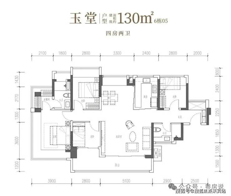 四开间IMAX光幕引景入室,以LDKB家庭聚场升温情感,更以双转角主卧套房,礼献一方休憩殿堂。• 玉堂·建面约130㎡4房2厅2卫:南向四开间,约14.7米IMAX光幕,尺度自成