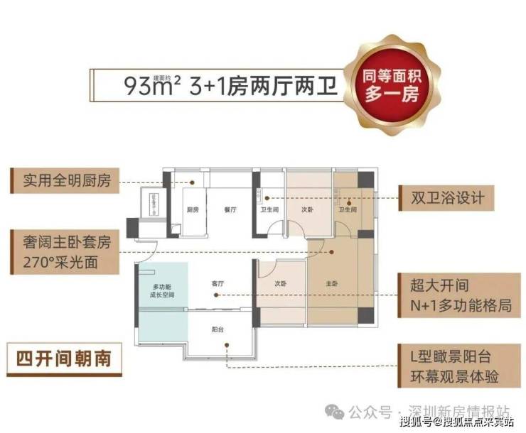 全部户型做到户户朝南,加上新规带来的飘窗赠送,相当有吸引力,我也是自新规之后第一次看到95㎡以下的四房。