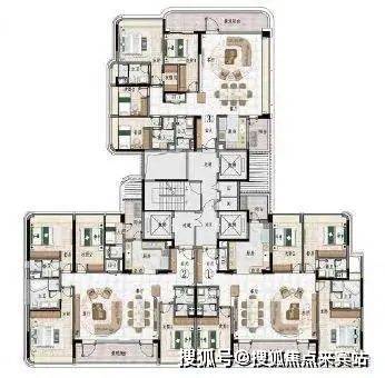 整个小区都是板楼设计,其中1栋和2栋都是2梯2户的大平层,而3栋和4栋则是3梯3户的大平层。由于公共空间的巧妙设计,每户都可以达到独梯独户的效果,从而提高了居民的隐私性。