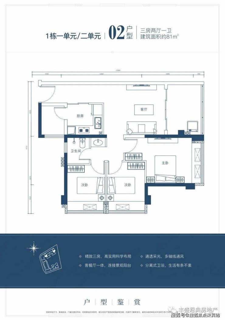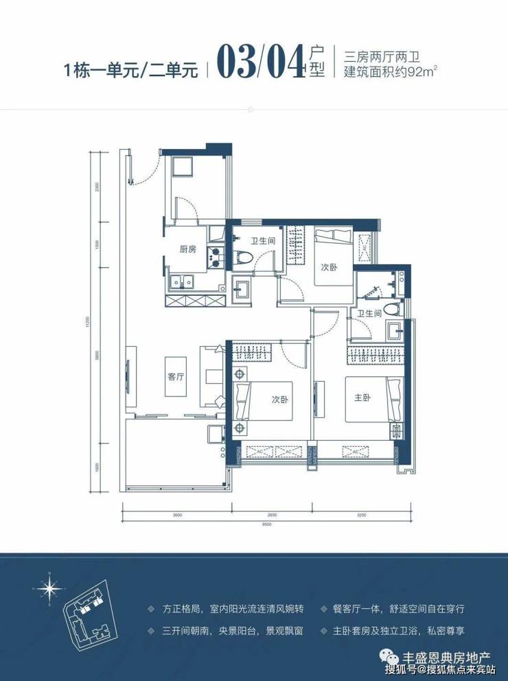 65㎡ 、77㎡ 、81㎡ 、92㎡ 三房两厅两卫