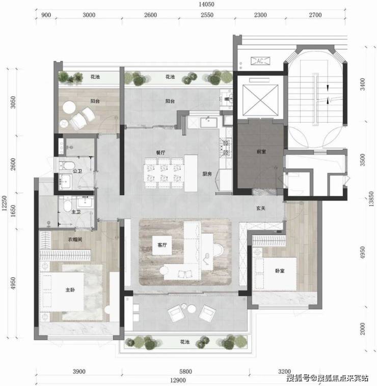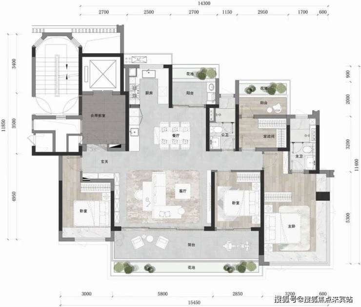 户型产品分113/128/143三个面积段,均为一梯二户板式楼型户户尊享私家独立电梯,标配大面宽景观阳台,高附加赠送