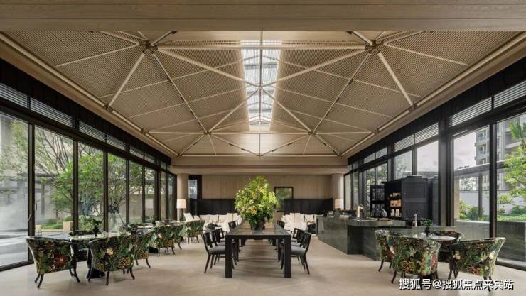 室内巨大的落地窗让自然光充盈整个大厅,提供绝佳的视野,使空间更加宽敞明亮。