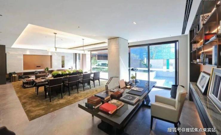 约十米开间的会客厅,9米的落地窗,提供无限量采光和开阔视野的奢阔空间,给家的团圆更多想象,对孩子来说,在没有束缚的空间里自由地成长,同时也朋友相聚的会客厅。