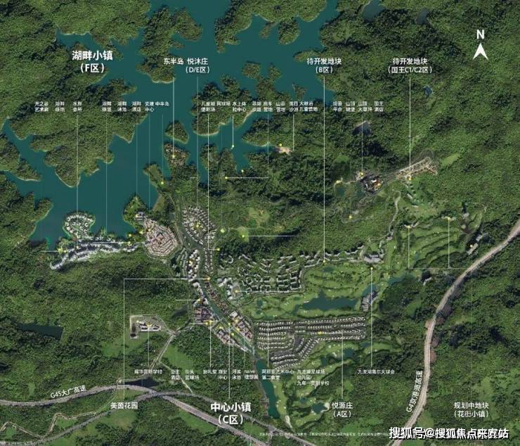 项目重点建设中心小镇C区、艺术聚落F区、伴山美地B区三大园区,并串联现状山地游乐、国王酒店、欧洲小镇与集散中心。
