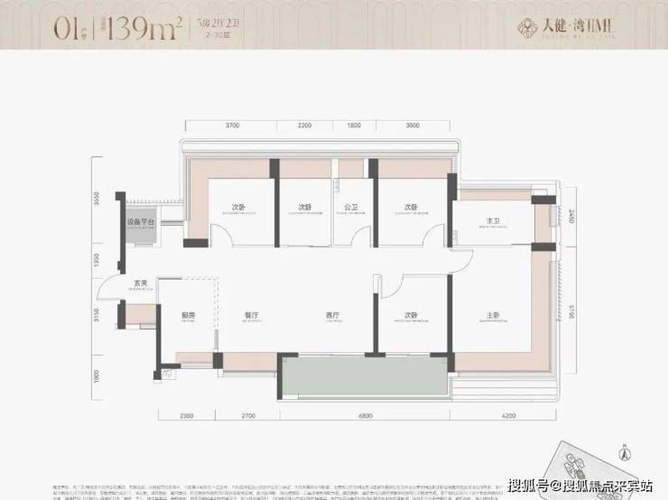 户型产品为113㎡ 4房和139㎡ 5房 约290套,2栋100米内31层住宅,2梯4户,其中主力为113㎡ 4房,具体户新图暂未公布。