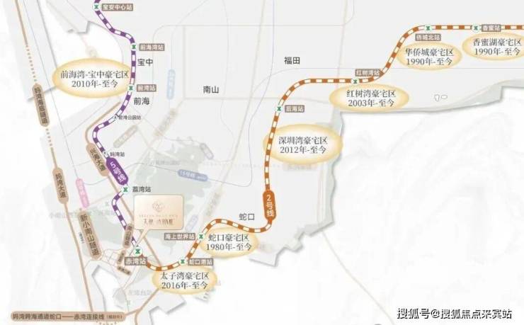 项目距2号线(豪宅线)与5号线(发展线)首发赤湾站约300m(直线距离),从此,坐地铁而不是站地铁,未来新小南山隧道(预计2027年竣工)、望海路升级等重大交通配套持续落地,咫尺间连通蛇口、前海。