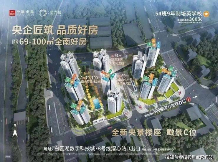 项目位于白云湖板块,靠近白云湖大道,周边就是白云湖数字科技城,小区距离地铁8号线滘心站约600米,旁边还建了一所九年一贯制中小学,目前已经确定引入培英办学,就在昨天,星光城与培英中学共建签约仪式顺利完成,中建业主人户一致即可入读该校,今年9月小学1年级和初中1年级都会开班,早期业主买这里的原因一大半都是冲着交通和教育来的,项目目前在售69-100平的三四房,都是南向,户型设计还不错,上车门槛也比较低,总价160多万就能买到三房,在售的都是现房,所见即所得,有兴趣看房的可以联系博主。