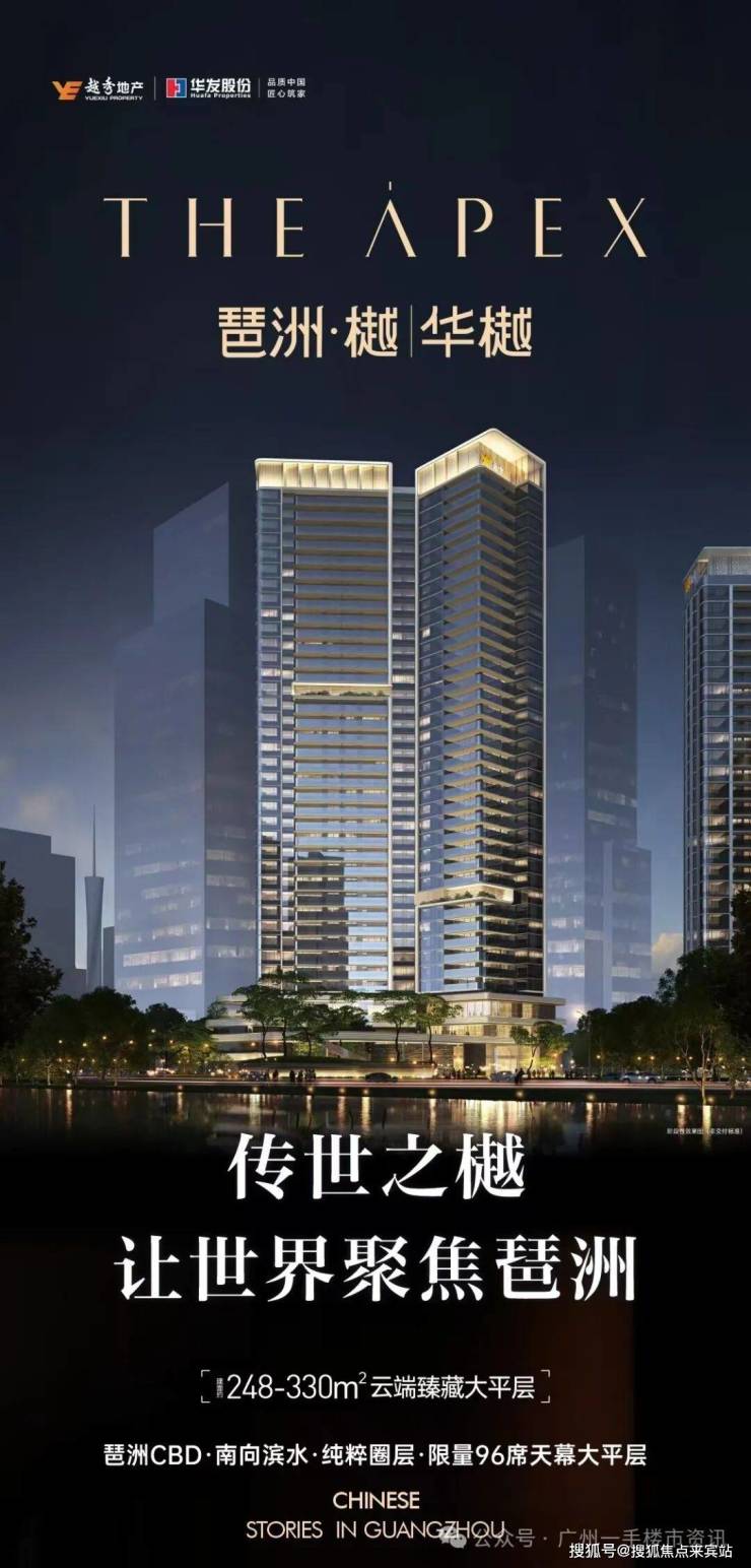 目前琶洲西区331住宅地块正式定名:琶洲·樾|华樾,华樾住宅项目也已经正式对外推售,主要在售户型面积约248-254-330㎡天幕大平层豪宅,仅96席琶洲CBD核心顶豪大平层。