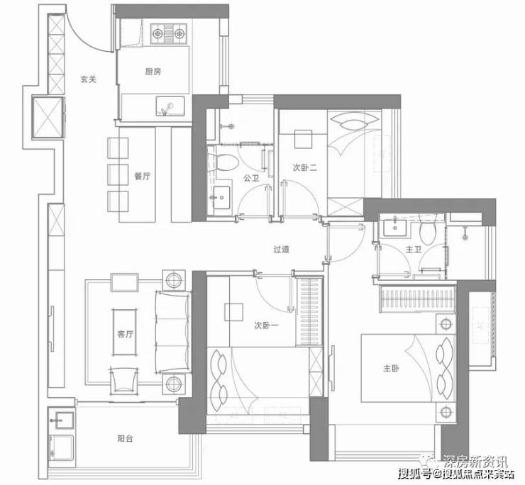 建面约103㎡3房2卫