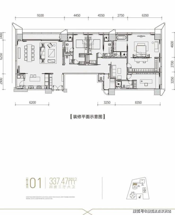 【建面约337平4房全套房+1工人房3厅6卫】